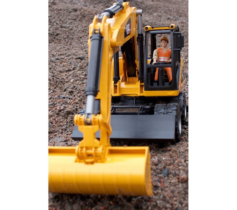 Bruder kaivinkone CAT-mallilta. Se on kopio, jossa on realistisia yksityiskohtia alkuperäisestä mallista. Kaivinkoneen kauhalla voidaan siirtää hiekkaa ja soraa, ja se on myös irrotettava. Kaivuuvartta ja kauhaa voidaan ohjata ohjauskahvalla. Ohjaamoa ja kaivuvartta voidaan kääntää 360 astetta ja tukijalat voidaan laskea kaivamisen aikana.