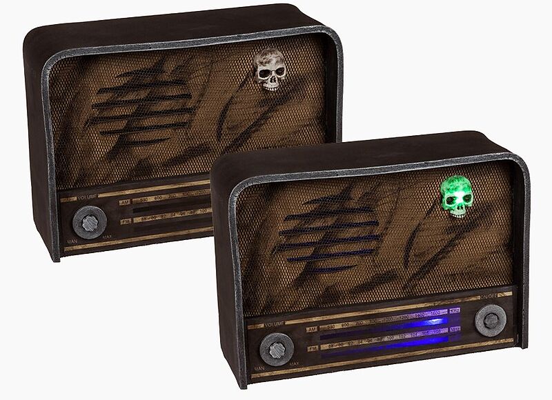 Kun radio on päällä, kallo palaa vihreänä ja taajuusmittari sinisenä! Täydellinen koriste Halloweenille!