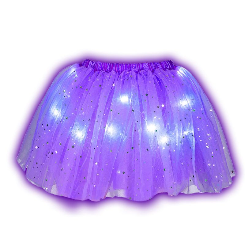 Mikä upea kaunis vaalean violetti hame pienillä vilkkuvilla LED-valoilla.
