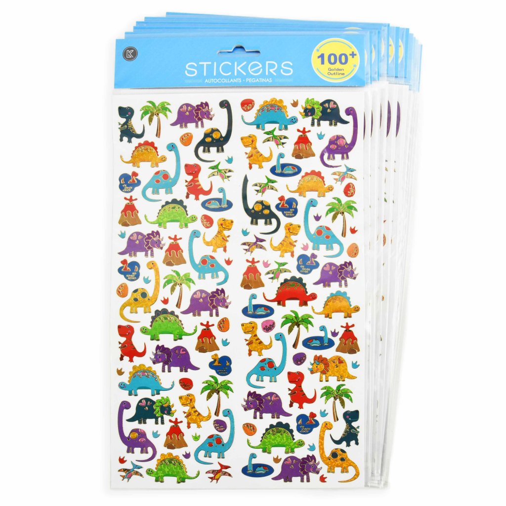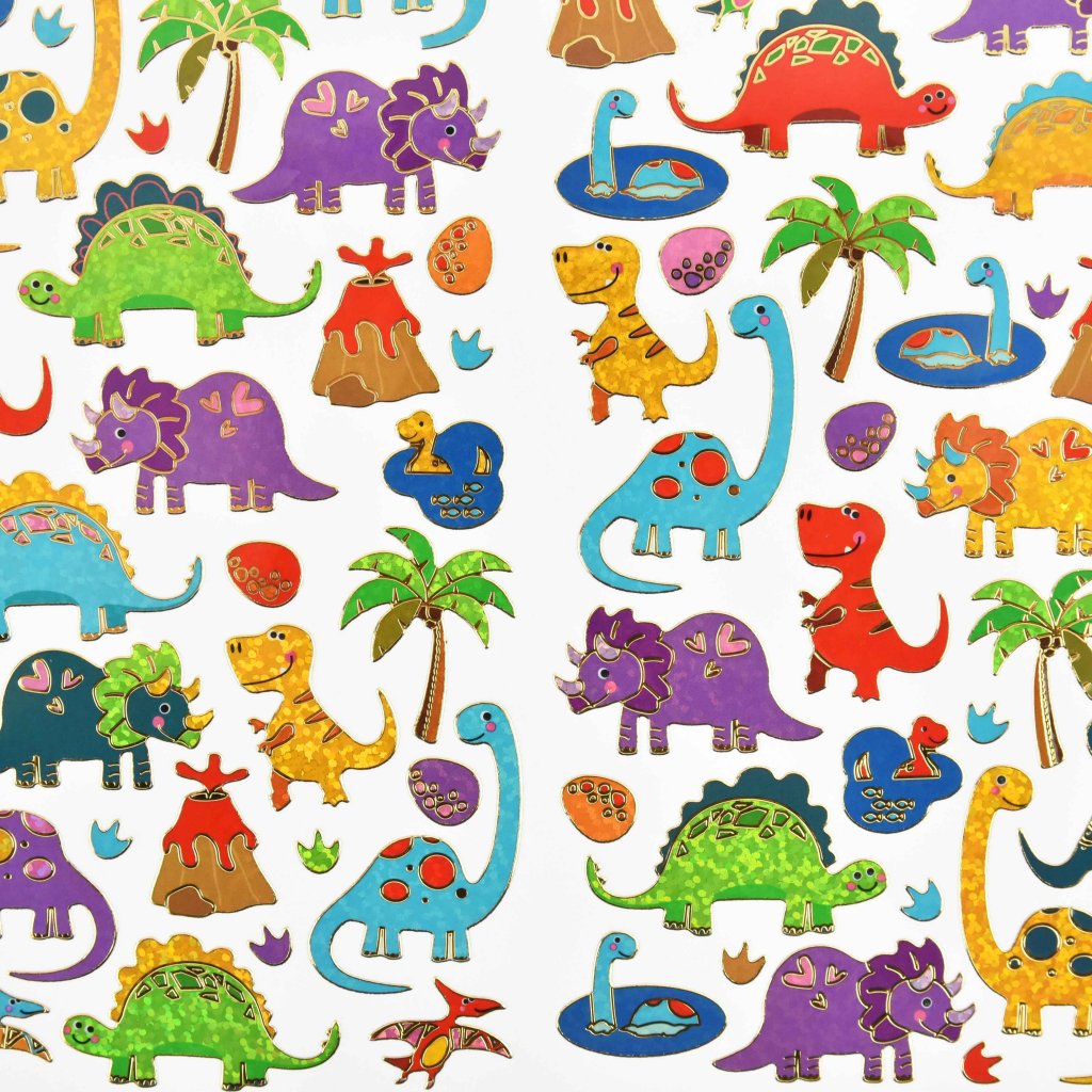 Dinosauruksia kaikissa väreissä ja muodoissa! Nämä tarroissa on monenlaisia dinosauruksia sekä kauniita tulivuoria ja palmuja. Yhteensä yli 100 tarraa, joilla voit koristella tietokoneen, puhelimen tai koulurepun. - Tarroja dinosauriaiheilla - Yli 100 kpl