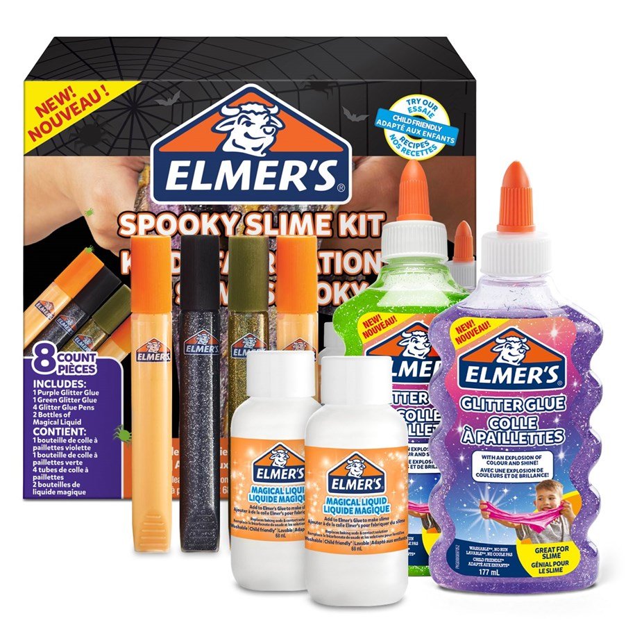 Elmerin aavemainen limapakkaus on hauska käsityöpakkaus sinulle, joka haluaa luoda kimaltelevaa limaa eri väreillä. Pakkaus sisältää eri värejä glitter-liimaa, taikanesteitä ja kimalluskyniä. Kaikki mitä tarvitset aavemaisen liman luomiseen. Sekoitusohjeet löytyvät pakkauksen sivulta!