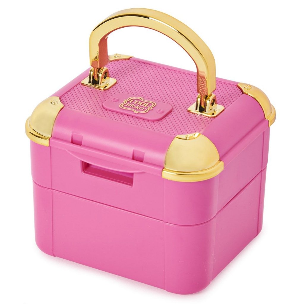 hårslingemaskinen on säilytyslaatikko johon voit tallentaa pieniä vaatteita. Päälle on kantokahva.
