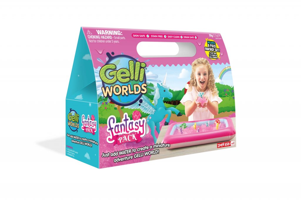Gelli Maailma Fantasy mahdollistaa veden liman kanssa slushkänsla ja muuttaa väriä vettä. Luvut sisältyy pakettiin.