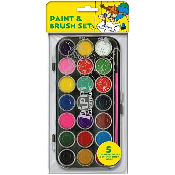 Hauska maali asettaa useita grafiikoilla Peppi Pitkätossu. On olemassa 21 eri vesihajasuihku värejä! Voit myös harjata, tarrat ja viisi arkkia kuvia värin. Täydellinen ajanvietettä sateisina tai aurinkoisina päivinä.