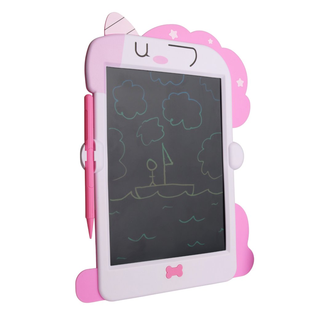LCD-näytöllinen piirustustaulu kirjoittamiseen ja piirtämiseen. Mukana on kynä käytännöllisellä kynätelineellä sekä pyyhkäisynappi, jolla näytön sisällön voi helposti tyhjentää ja aloittaa alusta.