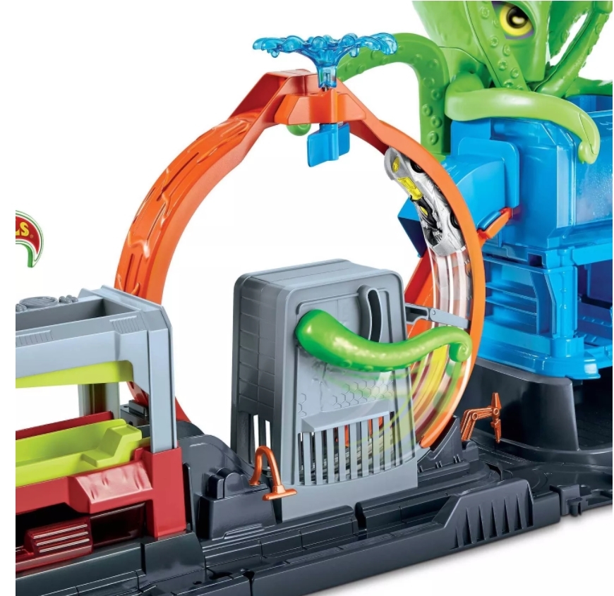 Hot Wheels City Ultimate Octopus -autopesuautorata on täynnä 120 cm: n upeita ominaisuuksia ja sen mukana tulee auto, joka tarjoaa useita yllätyksiä, jotka saavat lapset haluamaan käydä uudestaan ja uudestaan!