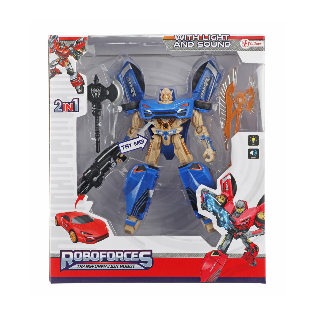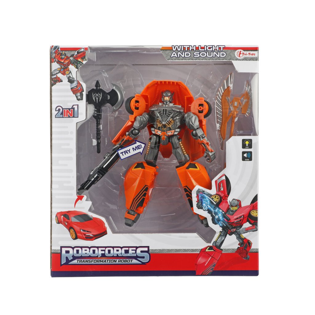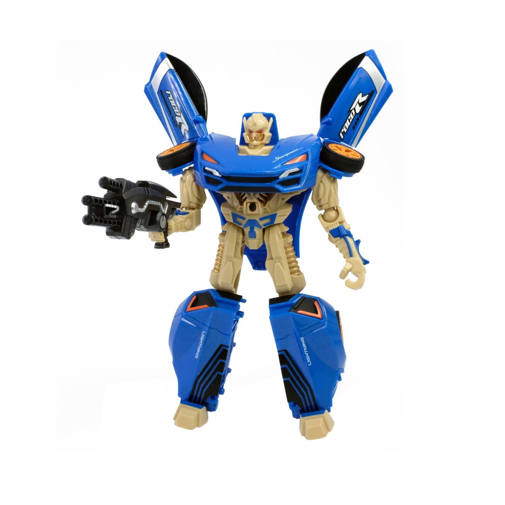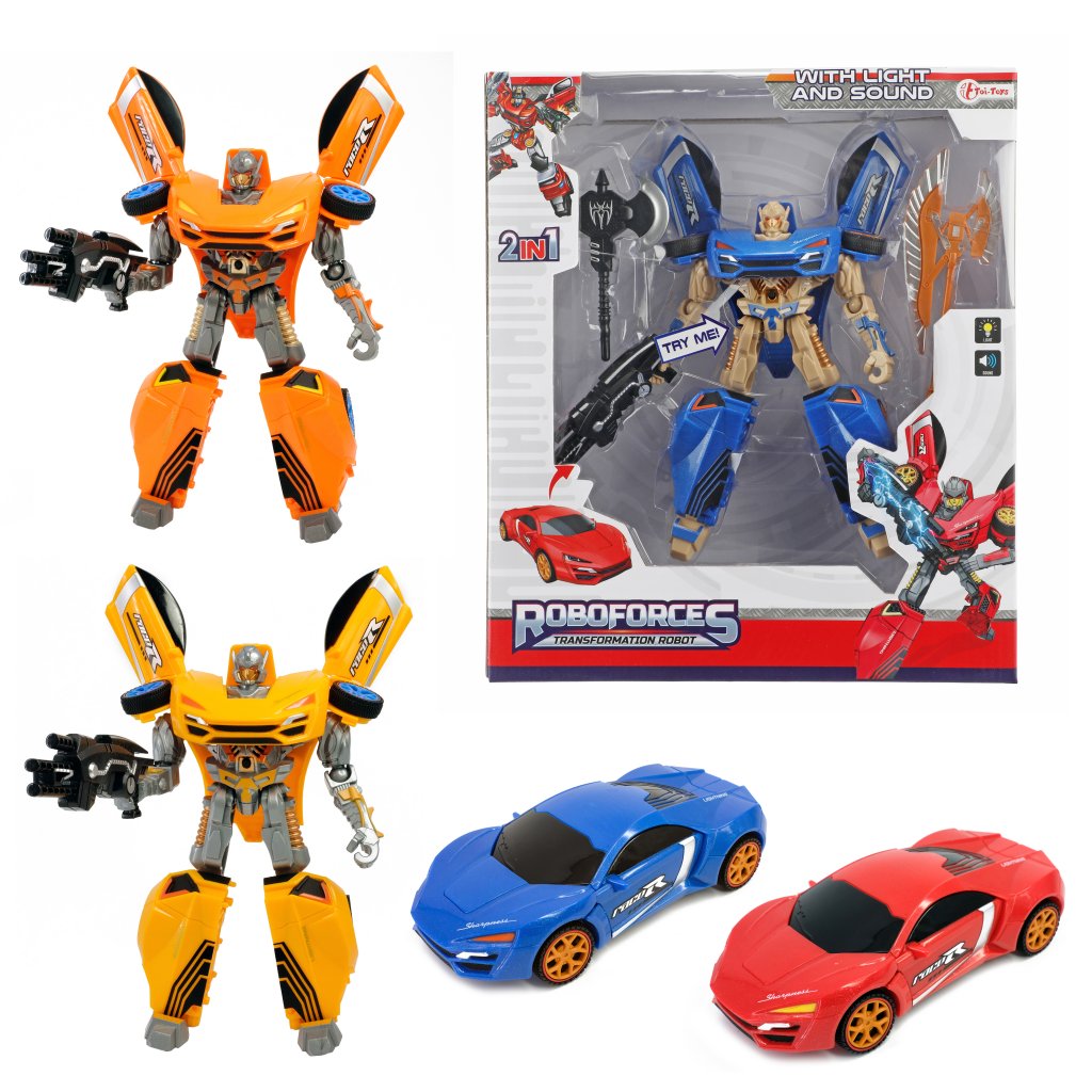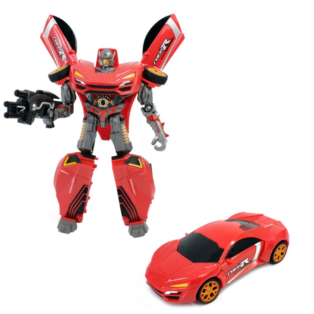 Med den här coola roboten som kan förvandla sig till en häftig cool sportbil, kommer ge ditt barn timmars av underhållning. Lek fantasifullt med både bileb eller roboten. När man trycker på knappen på bröstet låter och lyser leksaken.