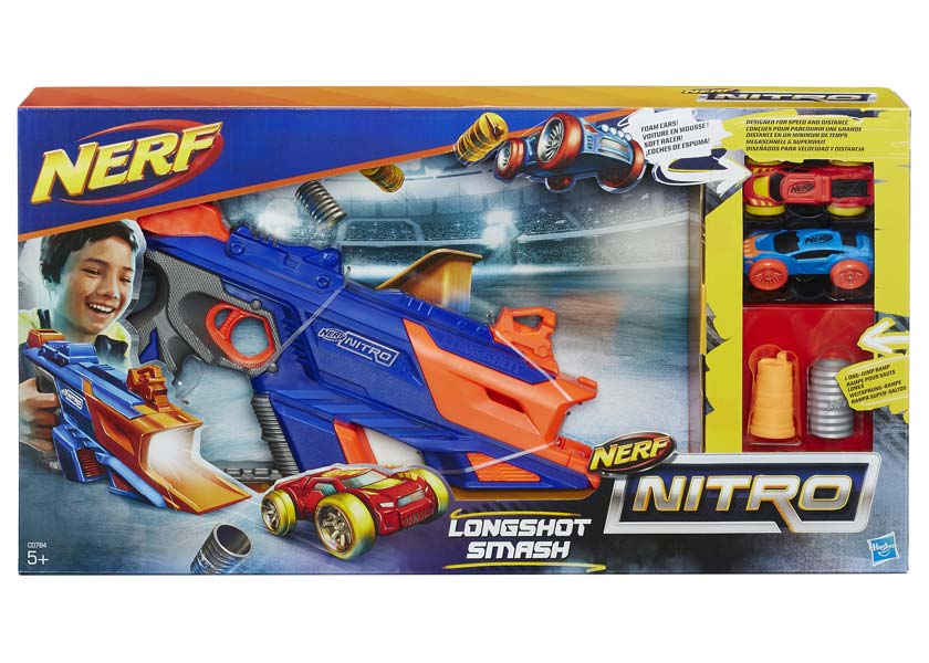 Luo upeita temppuja ja työntää pois vaahto autoja blasters ja voimalla Nerf! Nitro Nerf Longshot Smash-set, lapset voivat haastaa toisensa nähdä kuka hyppää rampin ja siirtää kaikki esteet. Esimerkiksi Blaster, puomi, kaksi vaahto kuorma muovirullalle ja neljä esteitä. Lisäyksikkoinä myydään erikseen.