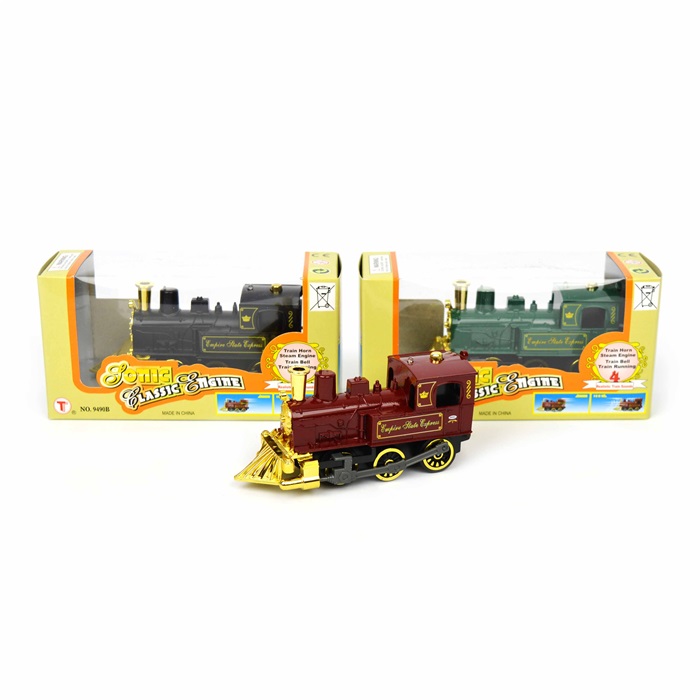 Classic veturit valoilla ja realistiset äänet. Mukava vanha höyryveturi realistisia yksityiskohtia ja tyylikäs kulta värejä. Ikoninen pala ystäville junien ja järnvägsliv. Asettua oikealla tiellä tämän kauniin lelu!Saatavana 3 eri väriä lähetetään satunnaisesti valittu. Alusten 1 pakkaus.
