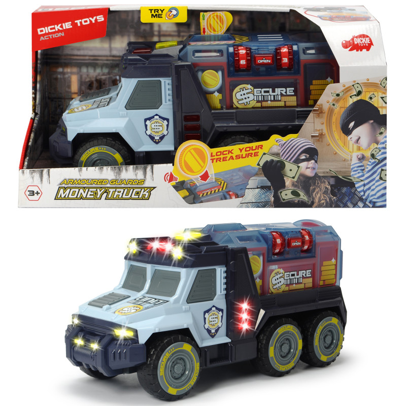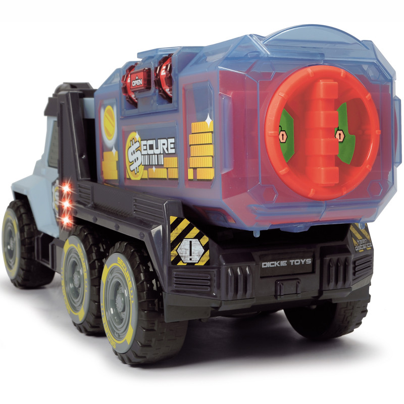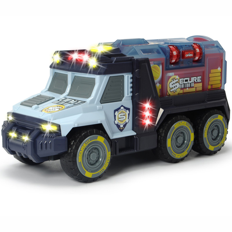Mikä on paras tapa säästää rahaa ja kolikoita jonnekin? Tietysti panssaroidulla pankki -autolla! Onnea henkilölle, joka yrittää saada arvokkaat rahat tästä kovasta pankki -autosta! Pankkiauto on varustettu äänellä ja valolla. valot toistetaan, kun ääni kytketään päälle. Äänet ovat kaikkea moottorin käynnistämisestä, poliisin takaa -ajoista, hälytyksestä ja joka kerta kun laitat penniäkään rahalaatikkoon, soitetaan rahan ääntä! Kuorma -auton takana oleva holvi voidaan irrottaa ja avata säästettyjen rahojen nostamiseksi. Kuinka paljon rahaa tämä pankkiauto säästää?