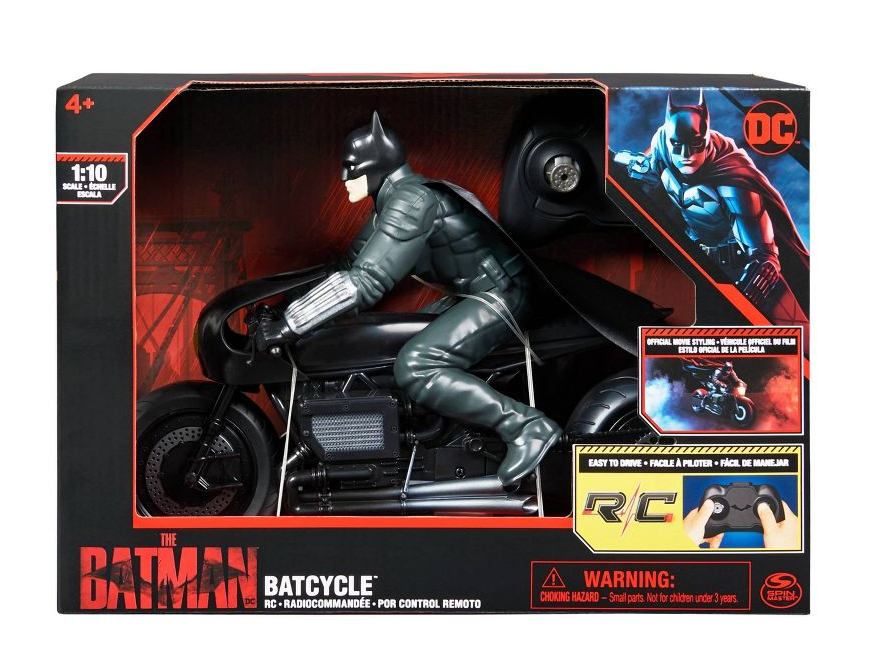 Kaksoisjoystick-kaukosäätimessä on anturit, jotka ilmoittavat, kun alat mennä kantaman ulkopuolelle, jotta tiedät, milloin Bat Motorcycle -pyöräsi täytyy ajaa takaisin kantaman sisällä, latautua ja aloittaa ajamisen välittömästi. Yksityiskohtainen sisustus ja Batman-elokuvan inspiroima.