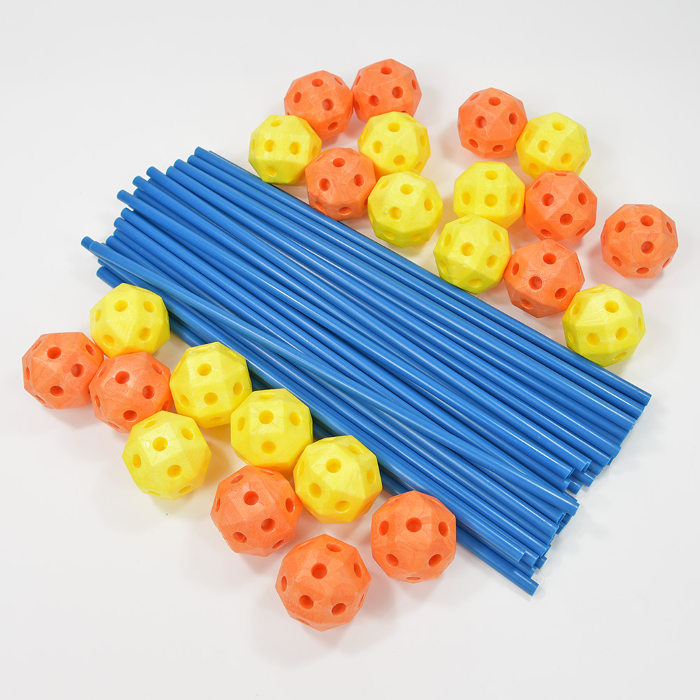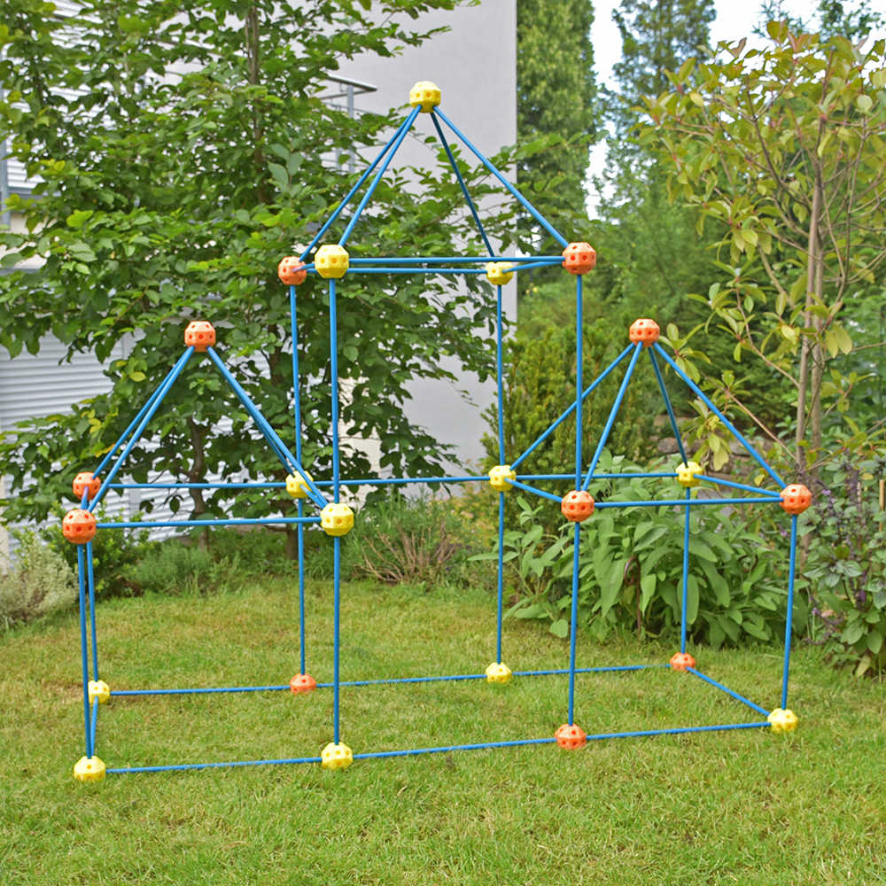 Valmistettu kestävistä materiaaleista, rakennuskomponentit on helppo koota ja purkaa. Tikut liitetään palloihin vaivattomasti ja luovat vakaita rakenteita sekunneissa. Teltanrakentaja on soveltuva sekä sisä- että ulkokäyttöön ja kestää muodonmuutoksia pitkäkestoisen leikin ajan.
