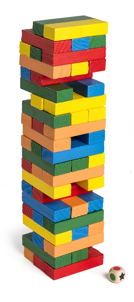 Pelaaja, joka rakensi tornin, aloittaa heittämällä noppaa ja poistaa sitten kaikki lohkot nopan värin mukaan. et kuitenkaan saa poistaa lohkoa yläkerroksesta. Jos noppaa päätyy tähteen, sinun on otettava lohko minkä värinen tahansa. Lohko asetetaan sitten kohtisuoraan yläkerrokseen nähden. Voit työntää tai vetää lohkoja pois, mutta voit käyttää vain yhtä kättä. Jopa lohkojen asettamiseksi päälle, voidaan käyttää vain yhtä kättä. Seuraava pelaaja heittää noppaa ja poistaa nopan osoittaman värisen lohkon ja asettaa sen päälle. Peli jatkuu, kunnes torni kaatuu. Häviäjä on se, joka kaataa tornin joko kun lohko poistetaan tai laitetaan sen päälle. Häviäjä rakentaa tornin seuraavaa kierrosta varten ja on itse pelaaja, joka aloittaa pelin!