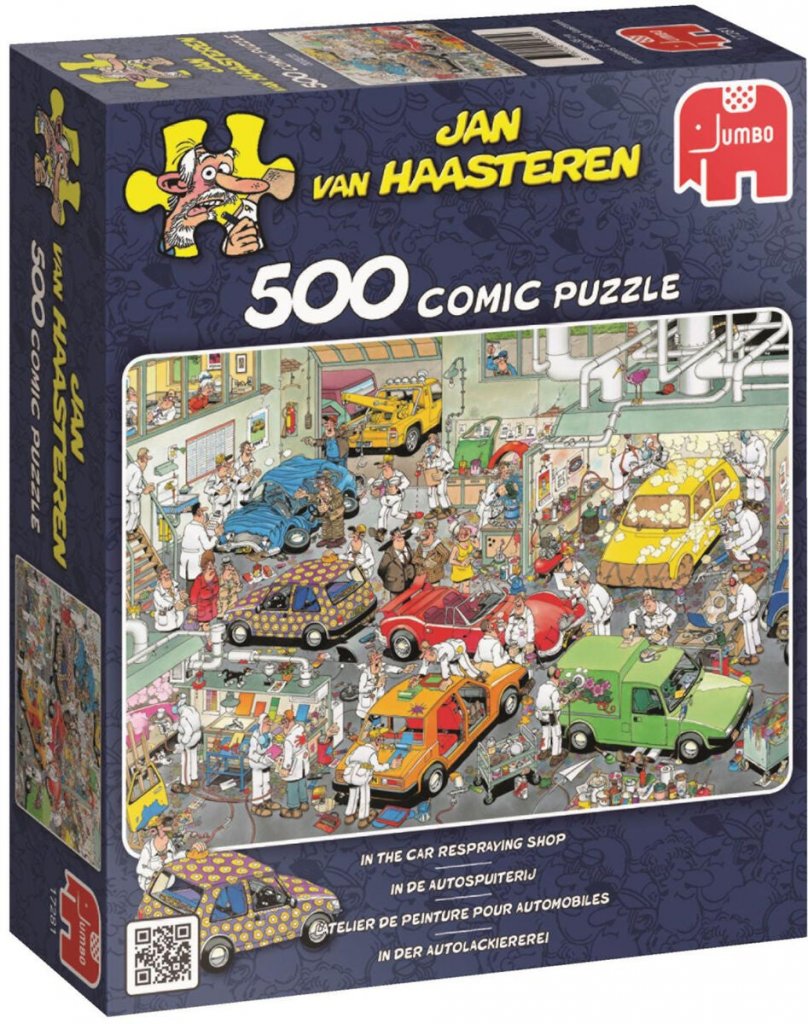 Jan Van Haasteren tuo tämän värikkään ja upean 500 kappaleen palapelin nimeltä In the car respraying shop, joka on suunniteltu kaikille Jan Van Haasterenin ja hänen erityisen tyylinsä faneille. Kun palapeli kootaan, sen koko on noin. 49x35 cm.