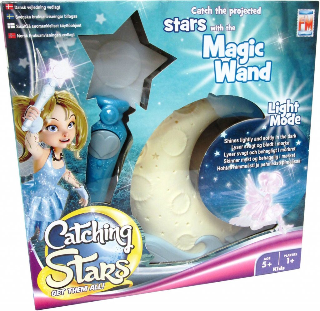 Himmennä valot ja valmistaudu parhaan tyttöpelin: Catch Stars! Kuuprojektori heijastaa kauneimpia tähtiä seinille ja kattoon. Yritä saada kiinni kaikki tähdet sauvallasi. Mutta ole nopea, koska ne katoavat yhtä nopeasti kuin tulivat. Sauva luo vilkkuvia ääniä ja vaihtaa väriä aina, kun saavutat seuraavalle tasolle. Eri tasoja on kymmenen. Jokaisen saadun kolmannen tai neljännen tähden jälkeen siirryt seuraavalle tasolle. Mitä korkeampi tasosi, sitä nopeammin tähdet vilkkuvat, mikä vaikeuttaa niiden saamista. Kun saavutat tason 10, sauva antaa sateenkaaren värejä tai näyttää tähden, ja erityinen melodia voidaan kuulla. Oletko voittaja?