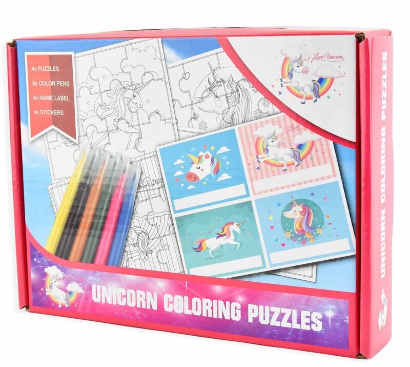 Yksisarvinen Väritä Itse -palapeli sisältää paloja, jotka lapsi voi itse värittää ennen kokoamista. Lopputuloksena on kaunis yksisarviskuva, täysin omalla tyylillä.