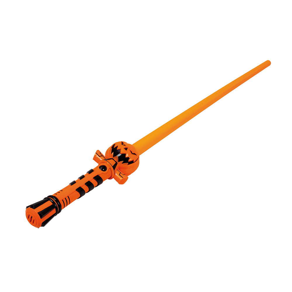 Halloween-miekka siisteillä ääni- ja valotehosteilla! Loistava miekka, jossa on kurpitsa-aihe. Lelumiekka näyttää valomiekalta ja syttyy napin painalluksella ja lähettää samalla siistin kuuloista lasermaista ääntä. Lapset voivat leikkiä miekalla Halloween -juhlissa tai ottaa sen mukaan, kun he ovat karkki vai kepponen -kierroksella.