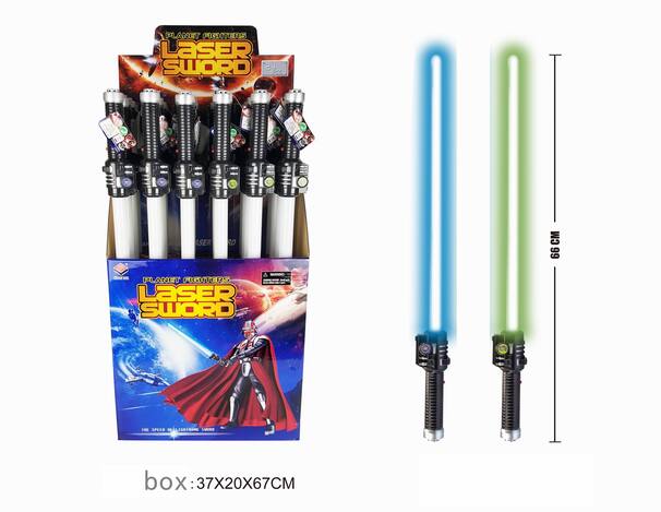Valmistaudu koviin taisteluihin! Tämä miekka on jännittävällä avaruusteemalla ja siistillä muotoilulla. Kun painat kahvassa olevaa painiketta, saat hienoja valo- ja ääniefektejä. Aivan kuin elokuvassa! Valosapeli toimii 3 kpl 1,5 V AAA-paristoilla. - Sisältää valo- ja äänitehosteet - Paristokäyttöinen