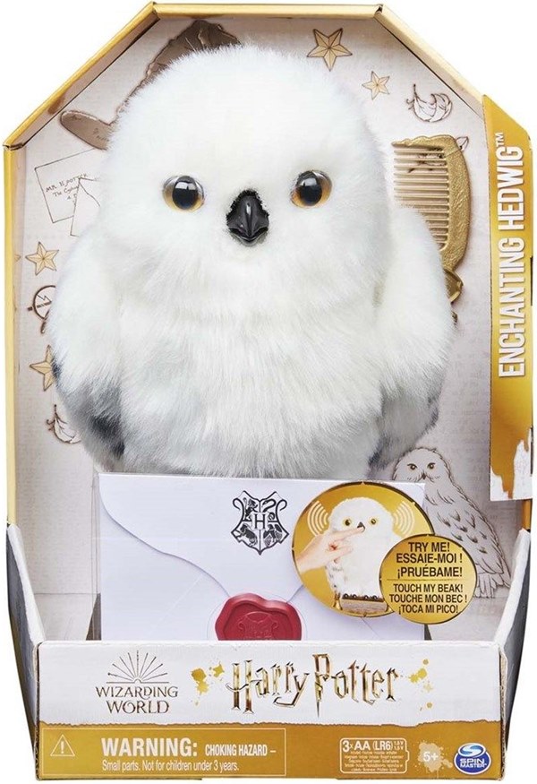 Hedwigin mukana tulee kampa, jotta voit harjata hänet pois hänen pitkän matkansa jälkeen Tylypahkasta! Hedwig on tuonut mukanaan kirjeen, joka näyttää tutulta. Se on sama kirje, jonka Harry Potter sai liittyessään Tylypahkkaan! Kun kosketat Hedwigin nokkaa, pöllö alkaa herätä henkiin ja antaa sirkuttavan äänen Hedwigin heiluttaessa siipiään!