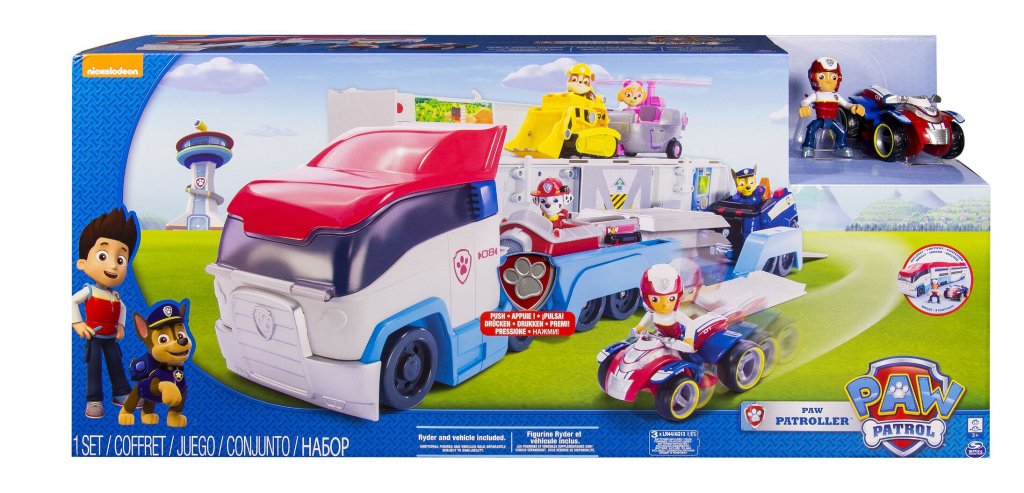 Kuorma-autolla PAW Patroller Riku ja koirat ovat valmiina seikkailuun. PAW Patrollerissa on tilaa 4 Ryhmä Hau -figuurille ja kolmelle ajoneuvolle. Kun PAW Patroller on auki niin siellä on tilaa kuudelle ajoneuvolle. Kuorma-autossa on hissi jolla he voivat nousta ylös ajoneuvojen valvontakeskukseen. Painamalla tassu-symbolia, tekee kuorma-auto ääniä PAW Patrol -sarjasta.