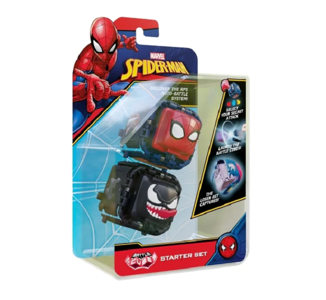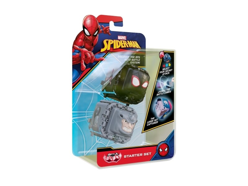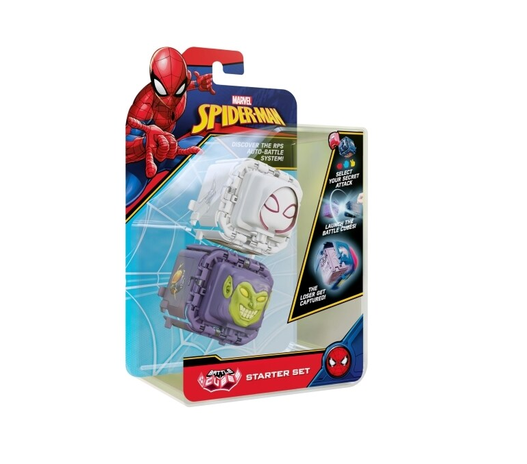 Spiderman Battle Cubes ovat nyt täällä ja he ovat valmiita kaksintaisteluun. Määritä kuutio-hyökkäyksen muoto valitsemalla kuutioon kivi, sakset tai pussi. Kun olet molemmat valinnut, on aika taistella! Työnnä kuutiot yhteen ja katso, mikä kuutio on kiinni toisesta. Joka jää kiinni, häviää! Se sisältää myös 6 tunnusta, joita voit pelata tai vaihtaa muiden kanssa.