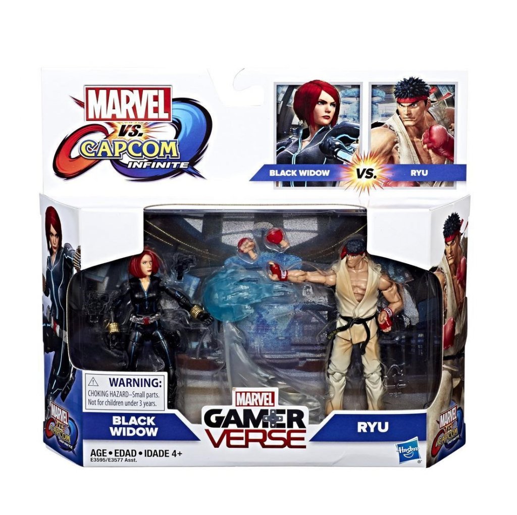 Marvelin ja Capcomin maailmojen odotetuin taistelu Black Widowin ja Ryun välillä tulee tämän Gamer Verse -sarjan avulla! Kuuluisat hahmot Black Widow ja Ryu ovat täällä valmiita taistelemaan kaikella energialla. Numeroissa on hämmästyttäviä yksityiskohtia, jotka antavat taisteluillesi realismia.Kukin lelu on suunniteltu näyttämään todellisilta hahmoilta. Luvut ovat nivellettyjä, ne mittaavat noin. 10 cm ja heillä on kaikki asenne jännittäviin seikkailuihin!