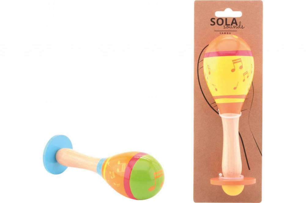 Erittäin hauska marakassi lasten leikkimiseen. Se on valmistettu puusta ja maalattu ihanilla, värikkäillä sävyillä. Tämä mukava marakassi on saatavana kahdessa eri värimaailmassa. Minkä marakassin saat, se tulee yllätyksenä!