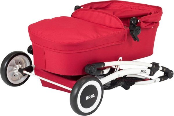 Brio -nukkevaunu pyörii punaisena! Nyt lapset voivat mennä ostoksille ja ladata omalle nukkavaunulleen tavaroita aivan kuten aikuiset!