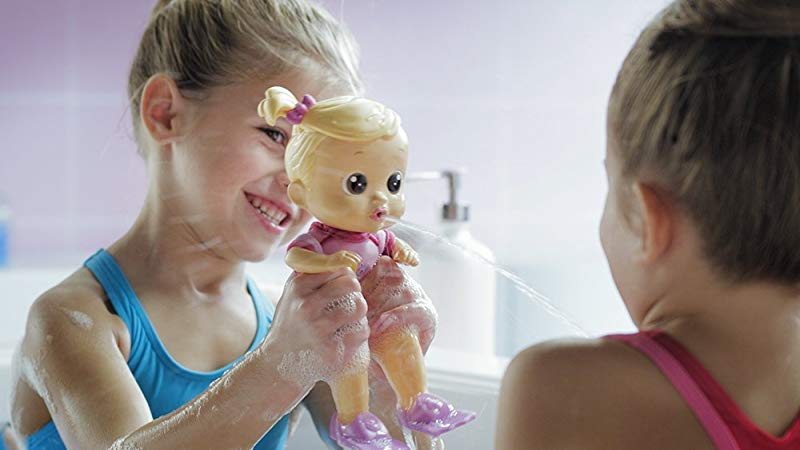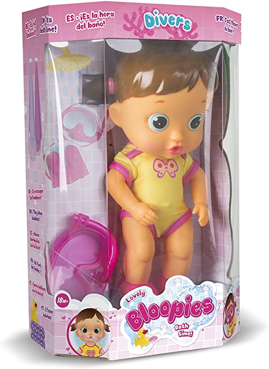 Kylpynukke hauskoilla lisätarvikkeilla. Ota nukke kylpyyn ja katsele hänen veden ruiskuttamista ja kuplien tekemistä suussa, kun painat sen vatsasta. Snorklaamisessa hän on paras!