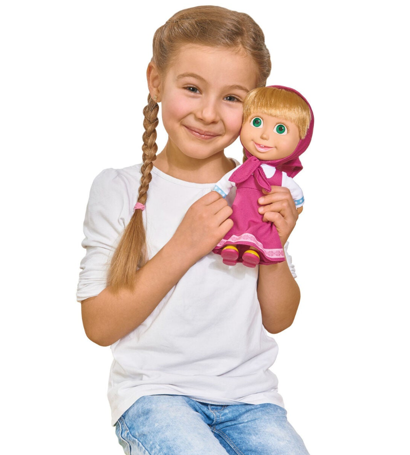 Masha Suositusta lastenohjelmasta Masha ja karhu! Masha on nukke, jossa on kaunis violetti mekko ja vastaava huivi! Masha on paennut Björneniltä ja nyt on sinun vuorosi varmistaa, ettei Masha joudu tilanteisiin, jotka voivat tuntua epämukavalta! Masha rakastaa seikkailuja metsässä ja keksi paljon hauskoja pelejä. Liity Mashan kanssa retkelle luonnossa tämän söpön Masha nuken kanssa!
