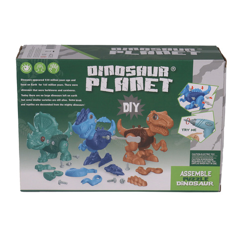 Rakenna oma dinosauruskaverisi! Tämän sarjan avulla voit koota 3 erilaista dinosaurusta porakoneen, ruuvien ja ohjeiden avulla. Hauska ja stimuloiva haaste! Porakone toimii paristoilla ja on hauska ja turvallinen käyttää. Valmiit dinosaurukset ovat realistisesti yksityiskohtaisia ja niissä on liikkuvia osia. - 3 erilaista dinosaurusta rakennettavana - Paristokäyttöinen porakone mukana