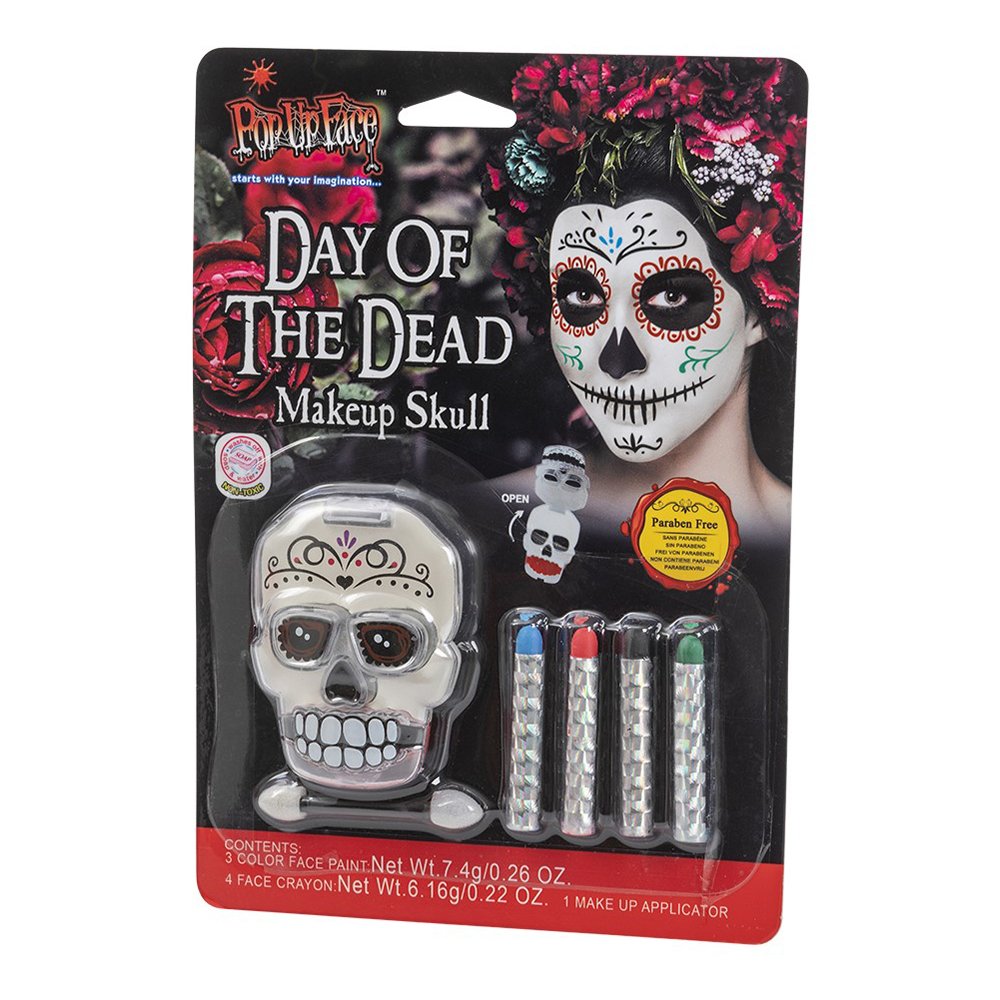 Pian on Halloween-juhlat! Silloin on tärkeää, että hankit puvun ajoissa. Mutta viileä naamiaisasu ei riitä, vaan on vieläkin hauskempaa, jos koristelet kasvosi hauskoilla aiheilla meikkipakkauksen ja meikkikallon avulla!