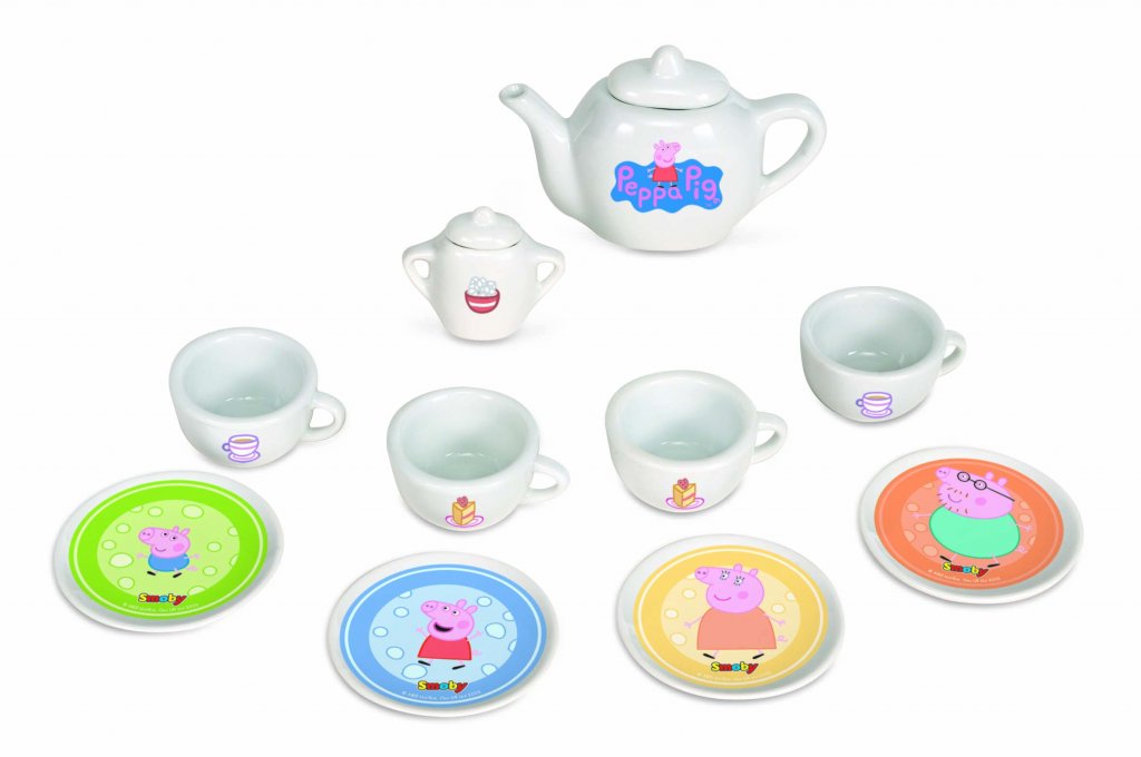 Pippa Possu Tea Set Posliini on söpö joukko ryhtyä Kun on aika kupin teetä. Joukko 12 kappaletta sisältää teekannu, astioita ja mukeja. Syynä teetä astiat on Pippa Possu ja hänen perheensä ja kupit ovat erilaiset leivonnaiset.
