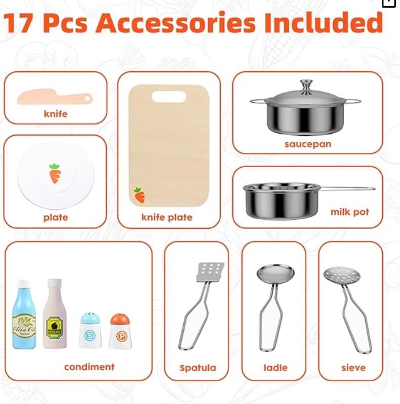 Tämä puinen lastenkeittiö on valmistettu lapsiturvallisista materiaaleista ja massiivipuusta, mikä takaa korkean kestävyyden ja pitkän käyttöiän myös aktiivisessa leikissä. Tyylikäs ja moderni muotoilu sopii erinomaisesti sekä lastenhuoneeseen että leikkihuoneeseen – opettavainen ja koristeellinen osa kotia.