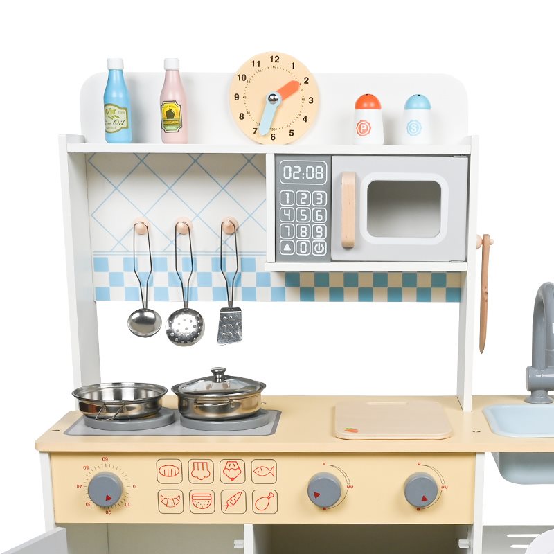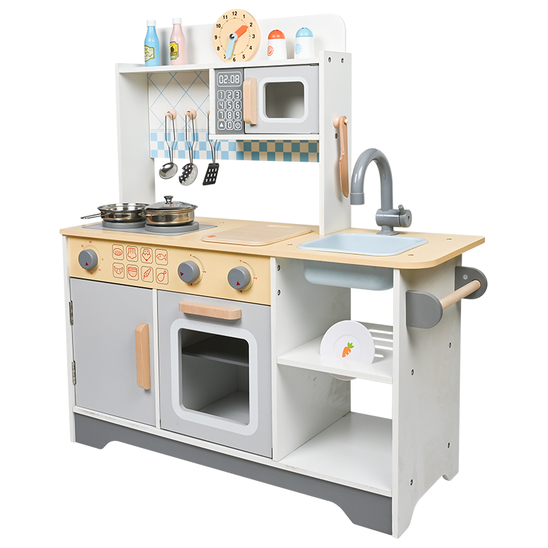 Tervetuloa luovan leikin maailmaan, jossa lapsesi pääsee kokin rooliin! Kids Zone puinen lelukeittiö on täydellinen ja realistinen lastenkeittiö, joka innostaa mielikuvitukselliseen ruoanlaittoon ja roolileikkiin. Täysin varusteltu lelukeittiö sisältää lieden, mikroaaltouunin, uunin ja tiskialtaan, joten lapsi voi leikkiä koko ruoanlaittoprosessin läpi – aivan kuten oikeassa keittiössä.