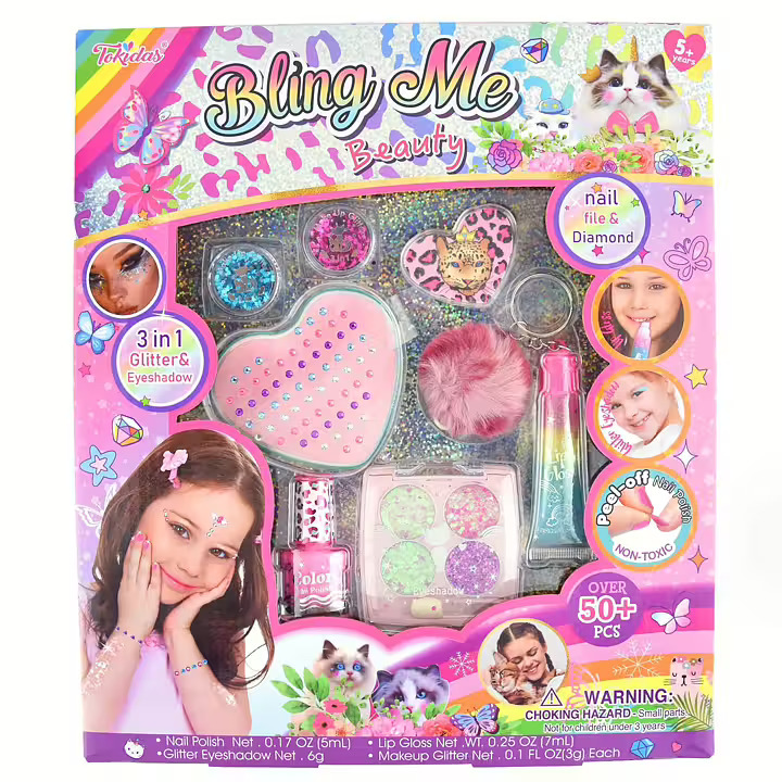 Tällä setillä voit luoda täysin uniikin tyylin! Siihen kuuluu yli 50 erilaista osaa, jotka vievät hiukset ja kynnet herkulliselle uudelle tasolle. Löydät kynsilakkaa, hiuslenkkejä, hiusklipsejä ja kynsitarroja, kaikki värikkäällä ja tyylikkäällä muotoilulla! Kynsilakka on myrkytön ja helppo poistaa. - Meikkisetti hiuksille ja kynsille - Yli 50 erilaista osaa Tuotetiedot: Mitat: 17 x 12 cm Suositeltu ikä: 5 vuodesta alkaen
