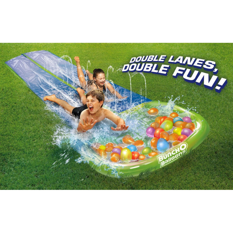 Zuru Bunch O Balloons tarjoaa erittäin nopeatempoisen vesipelin tällä vesiliukumäellä ja monilla vesipalloilla.