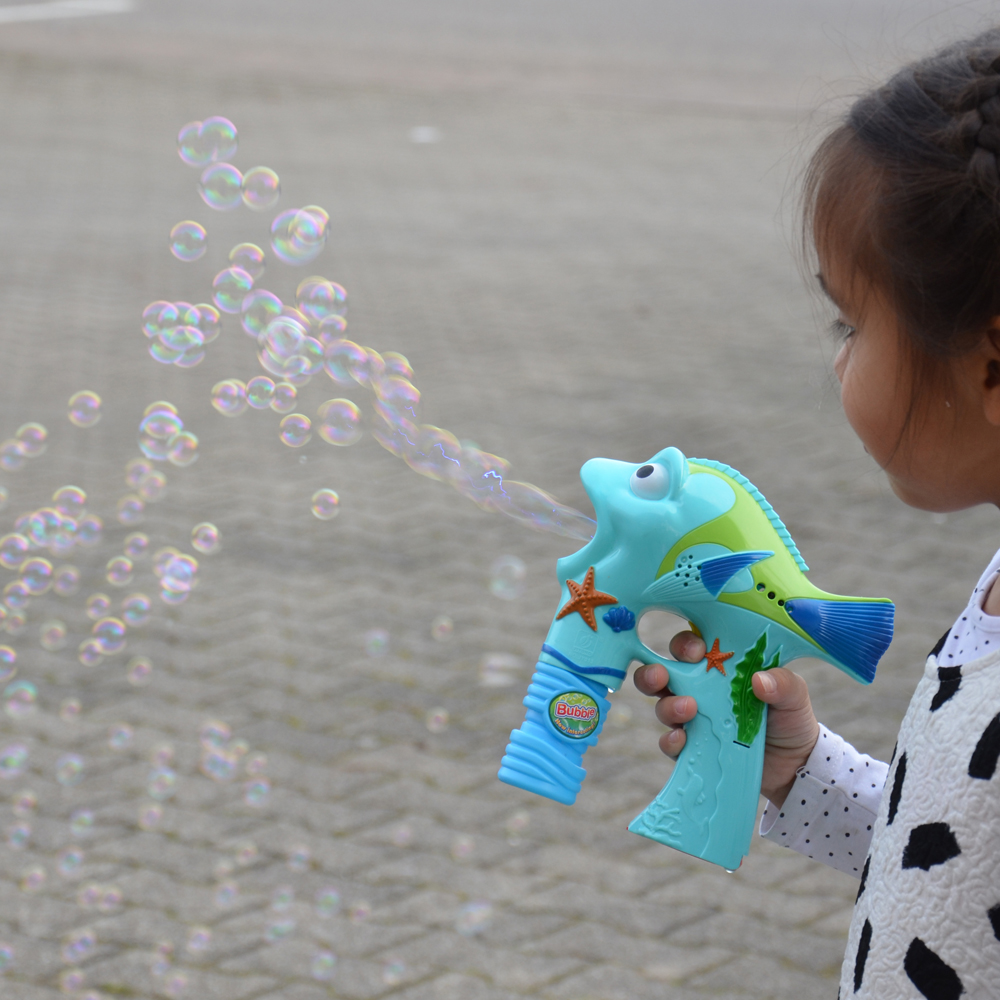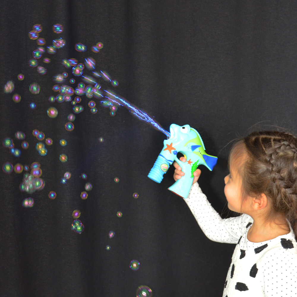Såpbubbel aseen valaistu ja kuplivaa pois paljon saippuakuplia. 1 pullo täytetään saippuakuplia sisällytetty ruuvaamalla aseen. Voidaan täyttää tavallisella saippuakupla neste.