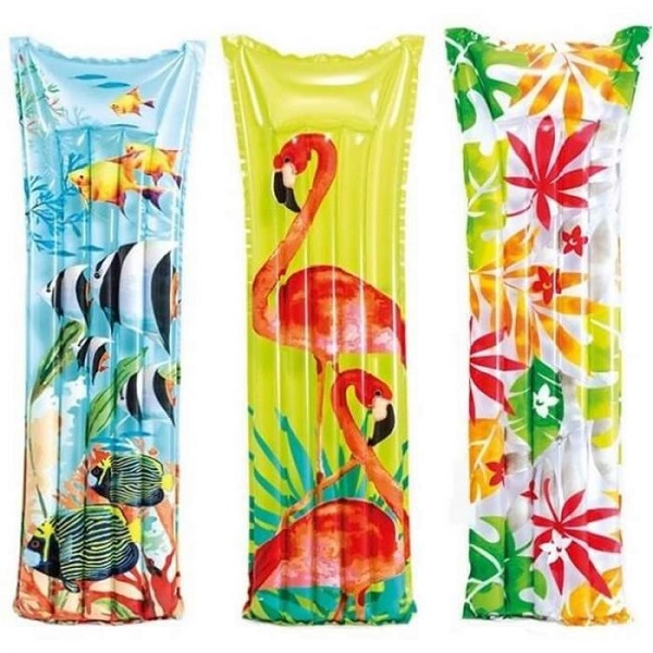 Nämä ilmapatjat, joissa on 2 ilmakammiota (183 x 69 cm), sopivat erinomaisesti käytettäväksi sekä puutarhassa, rannalla että uima-altaalla. Saatavana 3 värikkäänä mallina upeilla havaiji-aiheilla.