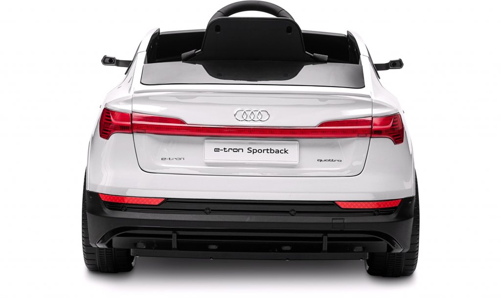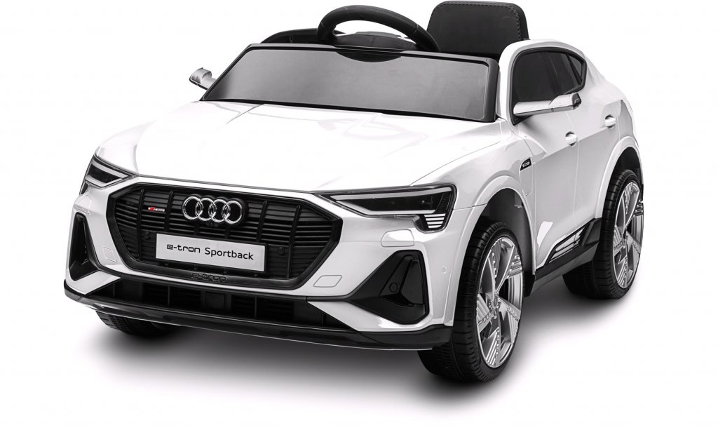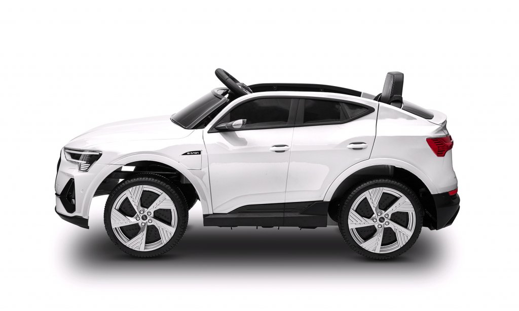 Näppärä ja siisti sähköauto Audi E Tron valkoisella tyylikkäällä muotoilulla. Ohjaa autoa kaukosäätimellä, lapsi voi istua autossa kun aikuinen ohjaa autoa. Sähköautossa on ainutlaatuiset kumirenkaat hiljaisempaan ja tasaisempaan ajoon sekä ääni- ja valotoiminnot, muista sytyttää valot illalla. Autossa on myös sivupeilit ja avattavat ovet.