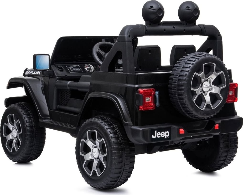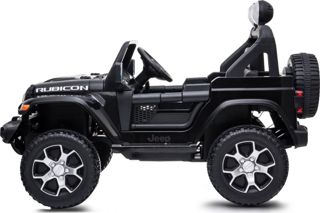 Autossa on myös sivupeilit ja avattavat ovet. Aja tyylikkäästi kadulla Jeepin sähköautolla. Wrangler Rubicon on erittäin mukava sähköauto, joka sinun on oltava lasten autotallissa.