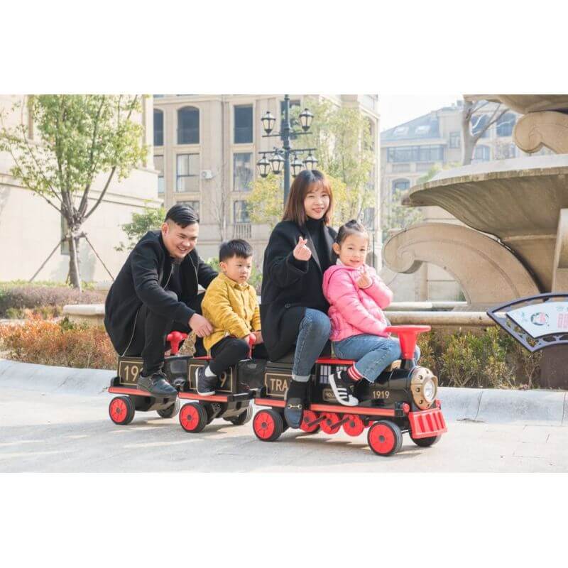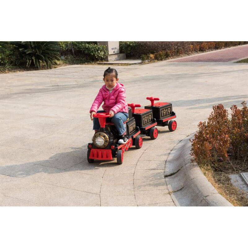 Azenon sähköjuna on varustettu tehokkaalla 12 V akulla, joka itsessään käyttää 4 moottoria, mikä tekee junasta täydellisen ajamiseen kaikenlaisilla teillä, kuten asfaltilla, laatoilla, ruoholla jne. Etuistuin on tehty niin, että saada aikuinen, joka kouluttaa johtajaa ja tilaa 2 lapselle trailerissa junan takana!