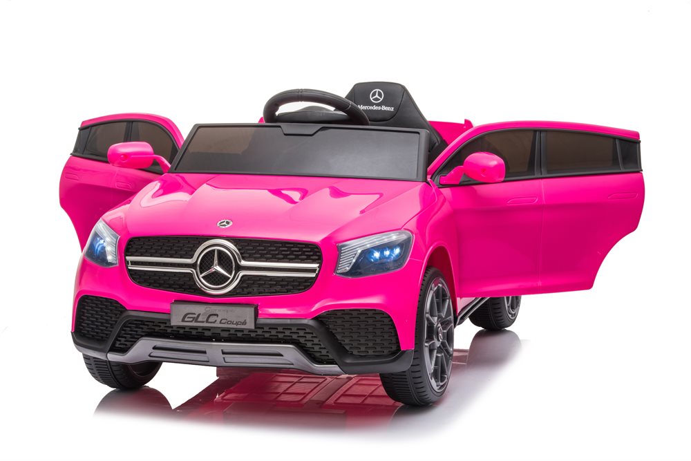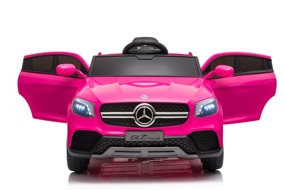 Röyhkeä ja siisti sähköauto Mercedes GLC Coupe vaaleanpunaisella tyylikkäällä muotoilulla ja nahkaistuimilla! Ohjaa autoa kauko -ohjaimella, lapsi voi istua autossa, kun aikuinen ohjaa autoa. Lapset voivat ajaa autoa itse, kun he ovat oppineet hallitsemaan autoa itse.