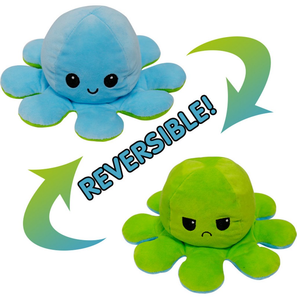 Voit kääntää mustekalan nurinpäin, toinen puoli on iloinen ja toinen vihainen. Käännä mustekala vihaiselle puolelle, jotta perheesi tietää, miltä sinusta tuntuu! Onnellinen minun on väriltään punainen ja surullinen minun on sininen.