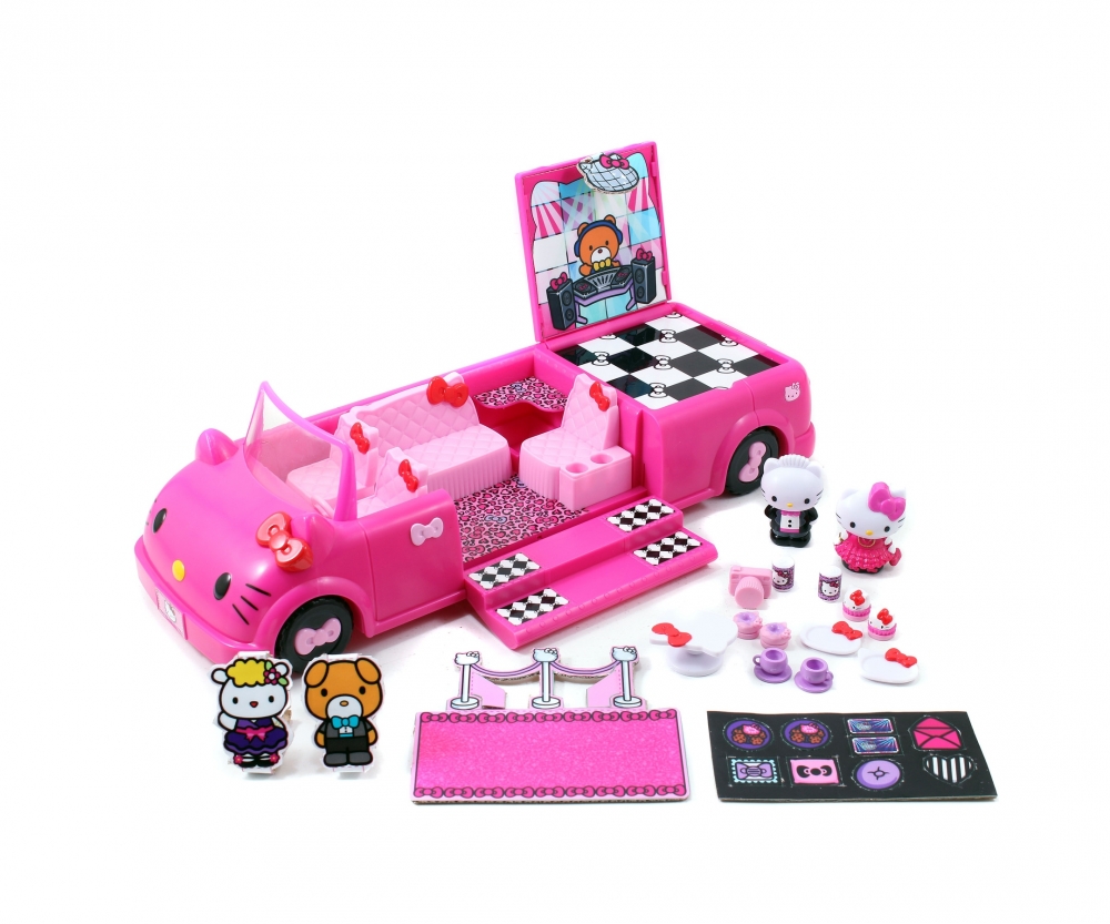 Sarja sisältää vaaleanpunainen limusiini, kaksi numeroa ja suuri lisävarustesarja astioilla ja kakkuja loistava välipala. Limusiini on mukava kodikas nurkkaan ja suuri tanssilattia, jossa Hello Kitty voi olla puolueiden ja harjoitellaan hänen tanssia lahjakkuutta! Sivuovi taittaa pois muodostaa tikkaat pääsy limusiinin erittäin kätevä tapa.