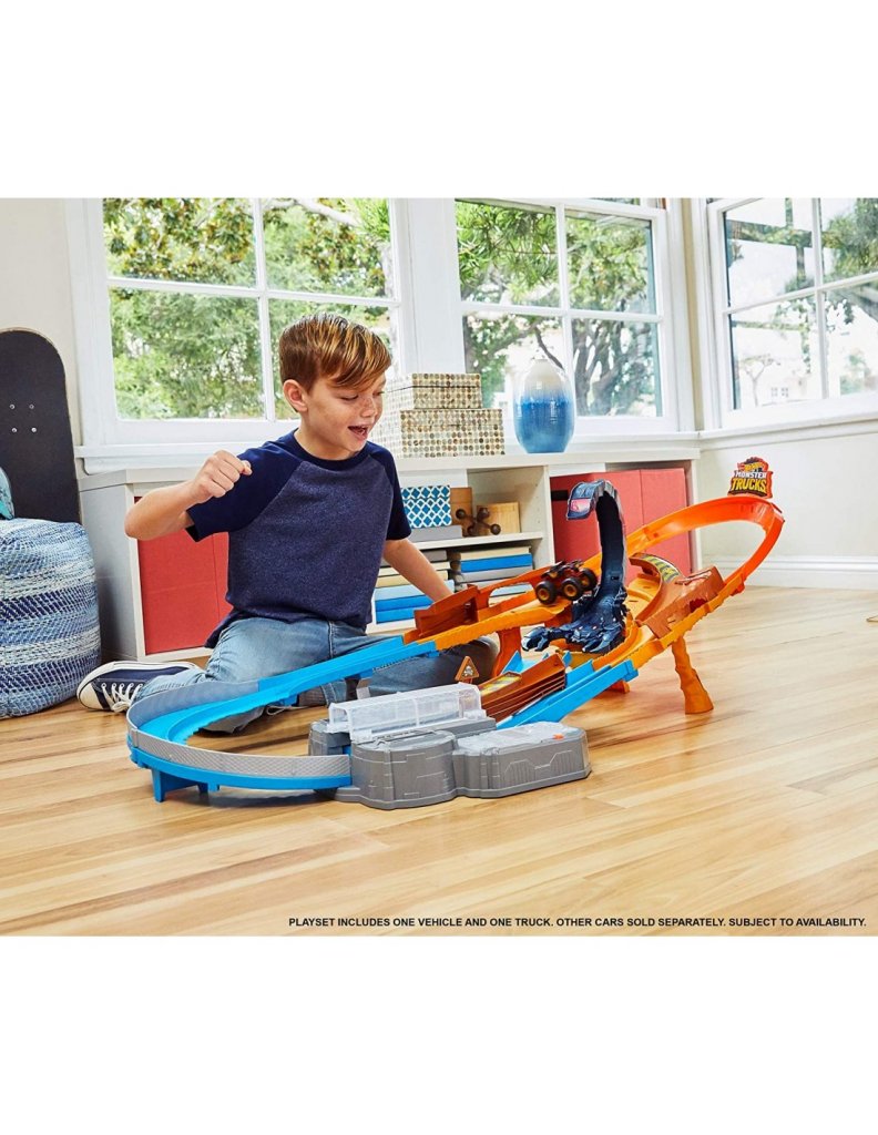 Hot Wheels Monster Track Scorpion Sting -kilpailutien avulla lapset voivat testata ajotaitojaan. Lapset voivat ladata autonsa kantoraketissa antamaan autolle tarpeeksi voimaa voidakseen poistaa vihaisen skorpionin!