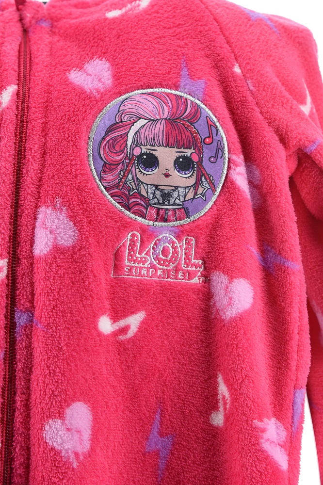 Osta iso pehmoinen fleecepyjama vetoketjulla lukittuaksesi itsesi helteeseen! Pyjaman aihe on L.O.L. Surprise! Pyjamat ovat pehmeät, lämpimät ja mukavat lasten päällä.