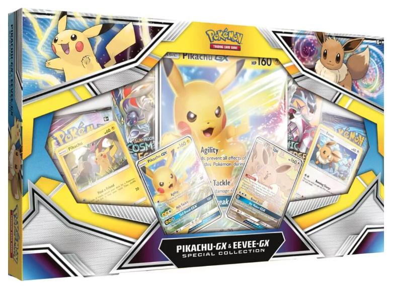 Pokemon Pikachu & amp; Eevee - Special Collection Box GX strong> p> H & auml; r erityispai & aring; van GX laatikon & aring; ovat suosittuja Ko & auml; ra Pok & eacute; mon Character & auml; rerna Pikachu ja Eevee vuonna GX folio kortteja. Laatikossa Ing & aring; r on & auml; suoneen Booster-paketti FR & aring; n Sun & amp; Moon sarja Steam Siege, Unified Mind ja Cosmic Eclipse. P>