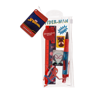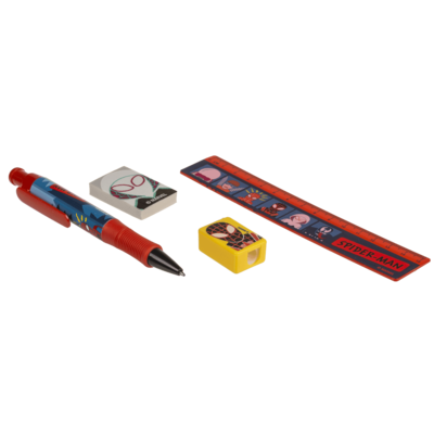 Pidä kirjoitustarvikkeet järjestyksessä tyylikkäästi Spider-Man -kynäpussilla! Tässä siistissä kynäpussissa on upea Spider-Man-kuvio, ja se sopii täydellisesti kaikille Marvel-faneille, niin lapsille kuin aikuisille. Setti sisältää kynän, pyyhekumit, teroittimen ja viivaimen – kaikki, mitä tarvitset koulupäivään tai luoviin projekteihin.