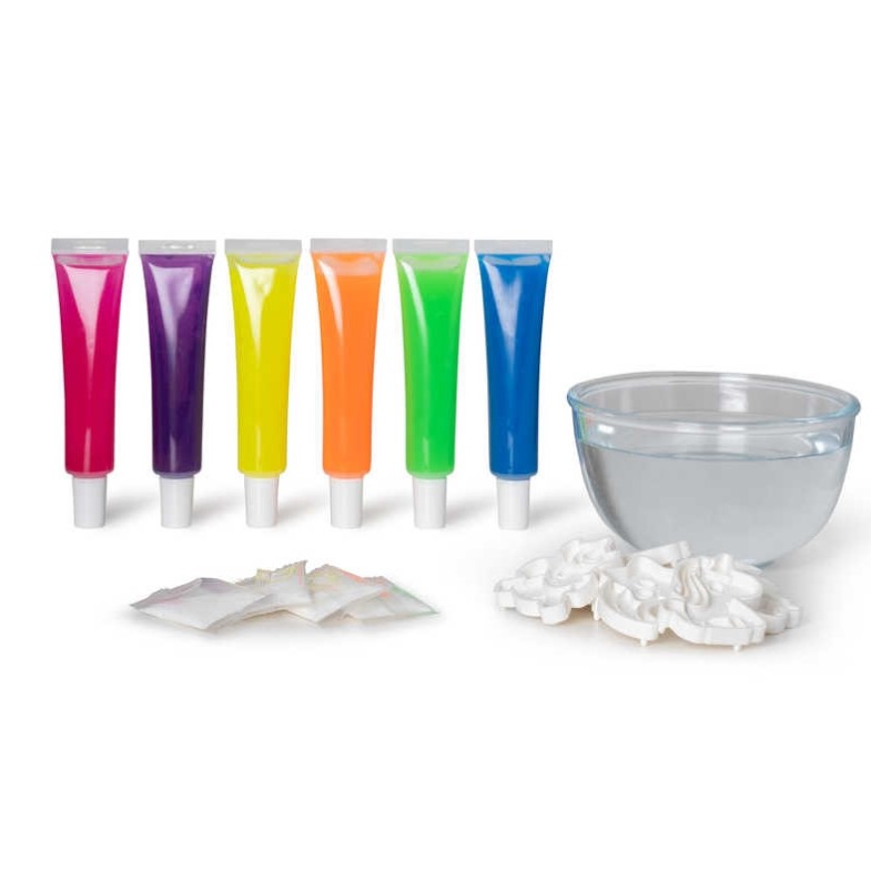 Sisältää: 6x muotteja, 6x värillisiä geeliputkia ja kovetusjauhetta.